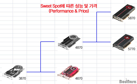 ¹°·Ð ÃֽŠGPU¿¡´Â 3D ±â¼ú, ¹ß¿, ¼Òºñ Àü·Â, ºÎ°¡ ±â´É µî¿¡¼ ÀÌÀü ¼¼´ëº¸´Ù ¹ßÀüµÈ ¸ð½ÀÀ» Çϰí ÀÖÁö¸¸ ÀÌ·± ½ºÀ ½ºÆÌÀÇ ´ÜÁ¡Àº °ú°Å ¶óµ¥¿Â HD 3870À¸·Î ÀÎÇÑ 4600 ½Ã¸®ÁîÀÇ ºÎÁø, ±×¸®°í Áö±ÝÀº ¶óµ¥¿Â HD 5700 ½Ã¸®Áî¿¡ ´ëÇÑ 4800 ½Ã¸®ÁîÀÇ °¡°Ý ¿ìÀ§·Î ³ªÅ¸³ª°í ÀÖ´Ù.
