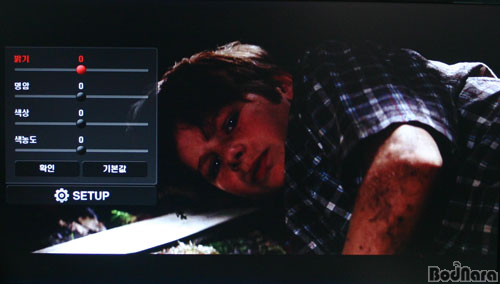 µ¿¿µ»óÀÇ °¨»óÁß¿¡ ÀÖ¾î¼ 'SETUP'¹öưÀ» ´©¸£´Â °Í¸¸À¸·Î ¹Ù·Î ȸéÀÇ »ö»ó°ú ¹à±â µîÀ» Á¶Á¤ÇÒ ¼ö ÀÖÀ¸¸ç, ȸé ÇÏ´Ü¿¡ º¸ÀÌ´Â 'SETUP'¾ÆÀÌÄÜÀ» ¼±ÅÃÇÏ¸é ±âº» ¸Þ´º¿¡¼ È®ÀÎÇÒ ¼ö ÀÖ¾ú´ø ¼³Á¤¸Þ´º°¡ ¿À¹ö·¦µÇ¾î ȸ鿡 ³ªÅ¸³ª ÀÚ¸·ÀÇ »ö»ó º¯°æ µîÀÇ ¼³Á¤°ªÀÇ º¯°æÀÌ °¡´ÉÇÏ´Ù.