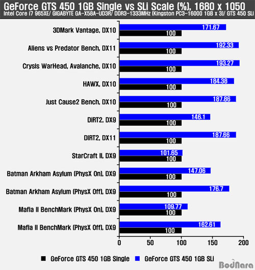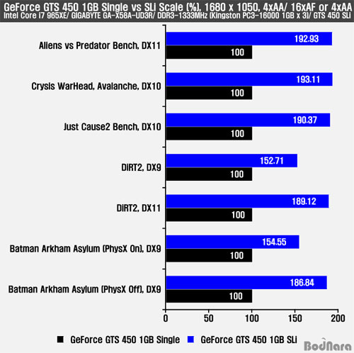 GTS 450 ½Ì±Û vs SLi : 1680 x 1050, 4xAA/ 16xAF or 4xAA