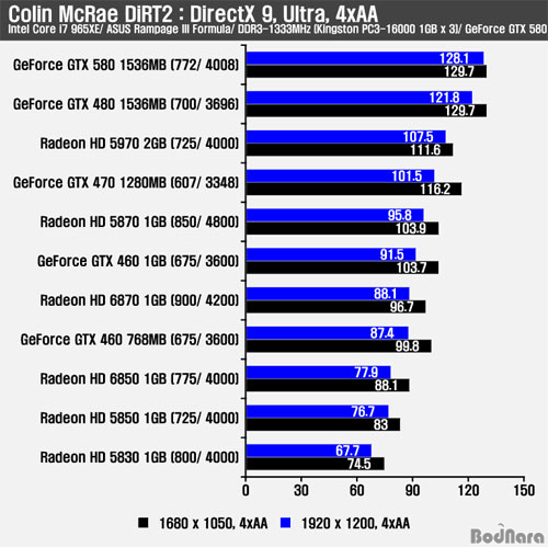 Äݸ° ¸Æ·¹ÀÌ ´õÆ®2 °ÔÀÓ¿¡ AA/ AF¸¦ Àû¿ëÇÑ °á°ú´Â ¾Õ¼ÀÇ °ÔÀÓµé°ú ´Þ¸® ¿©ÀüÈ÷ ½Ì±Û GPUÀÎ ÁöÆ÷½º GTX 480°ú GTX 580ÀÌ ´õ ³ôÀº ÇÁ·¹ÀÓÀ» Á¦°øÇϸç, ÁöÆ÷½º GTX 580Àº GTX 480°ú ÀúÇØ»óµµ´Â Â÷À̰¡ ¾øÀ¸³ª °íÇØ»óµµ¿¡¼ Á¶±Ý ´õ ³ôÀº ÇÁ·¹ÀÓÀ» Á¦°øÇÑ´Ù.