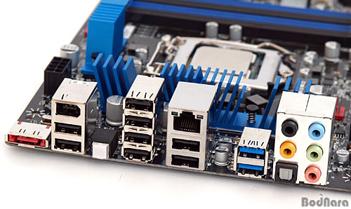 eSATA2 Æ÷Æ®¿Í USB 2.0 6Æ÷Æ®¿Í ÇÉ Çì´õ 4°³·Î ÃÑ 14°³ ÀåÄ¡¸¦ Áö¿øÇϸç, ±â°¡ºñÆ® ÀÌ´õ³Ý°ú USB 3.0 (ÆÄ¶õ»ö) 2Æ÷Æ® (NEC D720200F1 ÄÁÆ®·Ñ·¯), ¾Æ³¯·Î±× »ç¿îµå 5Æ÷Æ®¿Í Optical SPDIF Ãâ·ÂÆ÷Æ®¸¦ Á¦°øÇÑ´Ù.