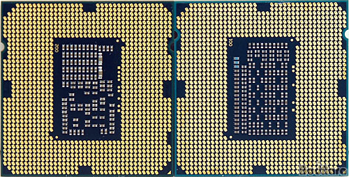 ÄÚ¾î i5 670Àº Ŭ¶ôµ¥ÀÏ·Î 32nm ¿þ½ºÆ®¹Ì¾î (Westmere) ±â¹Ý CPU¿Í 45nm °øÁ¤ÀÇ GPU°¡ ¸ÖƼĨ ¹æ½ÄÀ¸·Î ÅëÇյǰí ÀÖÀ¸¸ç, LGA1156 ¼ÒÄÏÀÌ Àû¿ëµÈ´Ù. ¹Ý¸é, »÷µðºê¸´Áö ÄÚ¾î i7 2500K´Â LGA1155 ¼ÒÄÏ ±â¹Ý¿¡ 32nm °øÁ¤ÀÇ CPU¿Í GPU°¡ ÇϳªÀÇ ´ÙÀÌ¿¡ ÅëÇÕµÈ ÇÁ·Î¼¼¼ÀÇ Â÷À̰¡ ÀÖ´Ù. ¾Õ¼Ã³·³ ¼ÒÄÏÀÇ ÇÉ ¹è¿ ¹× ±¸¼ºÀÇ Â÷À̸¦ º¸À̰í ÀÖÀ¸¸ç, »ó´ÜÀÇ È÷Æ®½ºÇÁ·¹´õ¿¡´Â Â÷À̰¡ ¾øÀ¸³ª Á¢Á¡ÀÇ ¼ö°¡ LGA1156ÀÌ ´õ ¸¹ÀÌ È®ÀεȴÙ. ¼ÒÄÏ Á¢Á¡ºÎ Áß¾ÓÀº CPU¿Í GPU°¡ ºÐ¸®µÈ Ŭ¶ôµ¥ÀÏÀº °¢°¢¿¡ ¸Â´Â ijÆÐ½ÃÅͰ¡ ¹èÄ¡µÇ°í ÀÖ´Â ¹Ý¸é, »÷µðºê¸´Áö´Â °í¸£°Ô ºÐÆ÷µÇ´Â Â÷À̰¡ ÀÖ¾î ¾î·ÆÁö ¾Ê°Ô ±¸ºÐÀÌ °¡´ÉÇÏ´Ù.