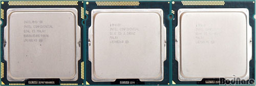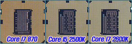 ÄÚ¾î i5 2500K/ i7 2600K´Â »÷µðºê¸´ÁöÀ̰í ÄÚ¾î i7 870 CPU´Â ¸°Çʵå´Ù. »ó´Ü È÷Æ®½ºÇÁ·¹´õ¿Í Á¤º¸ Ç¥±â´Â Å©°Ô ¹Ù²îÁö ¾Ê¾ÒÀ¸¸ç, »ó´ÜÀÇ Á¢Á¡ ¸ð¾çÀº ¸°Çʵ尡 ´õ ¸¹¾Æ ±¸ºÐÀÌ °¡´ÉÇÏ°í ¼ÒÄÏ ÀåÂø Ȧ ºÎºÐÀº »÷µðºê¸´Áö°¡ ´õ ³ô°Ô ¹èÄ¡µÇ¾î ȣȯµÇÁö ¾ÊÀ½À» ¾Ë ¼ö ÀÖ´Ù. À̵éÀº LGA1155¿Í LGA1156 ¼ÒÄÏÀ¸·Î ¼·Î ȣȯµÇÁö ¾Ê´Â´Ù. ÇÏ´Ü Á¢Á¡ºÎ Áß°£ÀÇ Ä³ÆÐ½ÃÅÍ ¹èÄ¡´Â »÷µðºê¸´Áö¿Í ¸°Çʵ尡 ¼·Î ´Ù¸¥ ¹èÄ¡°¡ ÀÌ·ç¾îÁ® ±¸ºÐÇÒ ¼ö ÀÖ´Ù.