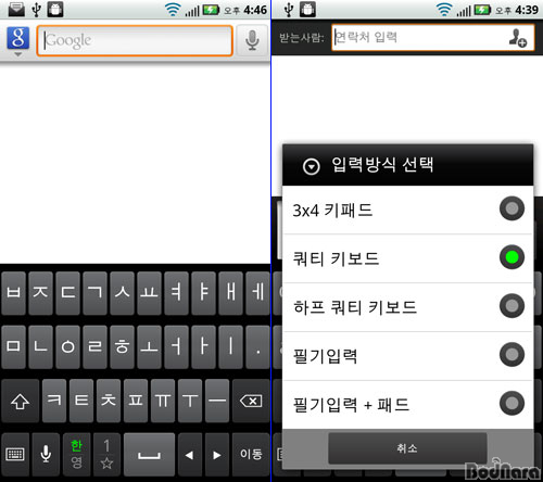 Űº¸µå ÀԷµµ ±âÁ¸ ¸ðÅä·Î¶ó ¾Èµå·ÎÀ̵åÆù°ú µ¿ÀÏÇÏ°Ô 3x4 ŰÆÐµå¿Í ÄõƼ Űº¸µå, ÇÏÇÁ ÄõƼ Űº¸µå, ÇʱâÀÔ·Â, ÇʱâÀÔ·Â + ÆÐµå ¹æ½ÄÀ» ¼±ÅÃÇÒ ¼ö ÀÖ´Ù. ¿©±â¿¡ Swype ÀÔ·ÂÀ̳ª À½¼º ÀÔ·Â ±â´Éµµ »ç¿ëÇÒ ¼ö ÀÖ´Ù.