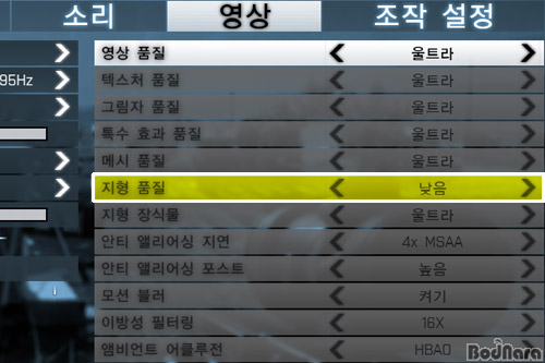 ش ɼ ׷ ī ʰų ɼ ߴ Ͱ, GPU ʾ ü Ұ ̸ 忡 ٸ ̴. Ʋʵ3 DirectX 10 ׷ ī Ultra High ɼǿ ǰ Ǿ, '߰' High Ultra ⿡ Ʋʵ3 'ü' Ұϴ.