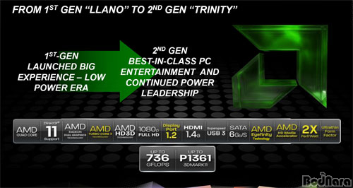 AMD´Â 2¼¼´ë ºÒµµÀú (Bulldozer) ÆÄÀϵå¶óÀ̹ö (Piledriver) Äھ ¹ÙÅÁÀ¸·Î °³¼±µÈ ¼º´ÉÀÇ ¶óµ¥¿Â HD 7000 ½Ã¸®Á žÀçÇØ ¼º´É Çâ»óÀ» ²ÒÇÑ 2¼¼´ë APU (ÄÚµå¸í : Æ®¸®´ÏƼ (Trinity))¸¦ 5¿ù 15ÀÏ Ãâ½ÃÇß´Ù.