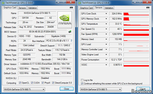 ±â°¡¹ÙÀÌÆ® ÁöÆ÷½º GTX 660 Ti OC¸¦ ºñ·ÔÇÑ ÁöÆ÷½º GTX 660 Ti´Â ÃÖ±Ù °ø°³µÈ GPU-Z 0.6.4 ¹öÀü¿¡¼ GPU ¹× ´ÙÀÌ »çÀÌÁî, Ŭ·° Á¤º¸¸¦ Á¦´ë·Î È®ÀÎÇÒ ¼ö ÀÖÀ¸¸ç, ÄÉÇ÷¯ ±â¹Ý ´Ù¸¥ Á¦Ç°Ã³·³ ±â°¡¹ÙÀÌÆ® ÁöÆ÷½º GTX 660 Ti OC ¿ª½Ã Ŭ·° ½ºÀ§ÄªÀ» Áö¿øÇØ ¾ÆÀ̵é½Ã ÄÚ¾î 324/ ¸Þ¸ð¸® 648 (162)MHz·Î ³·¾ÆÁø´Ù.