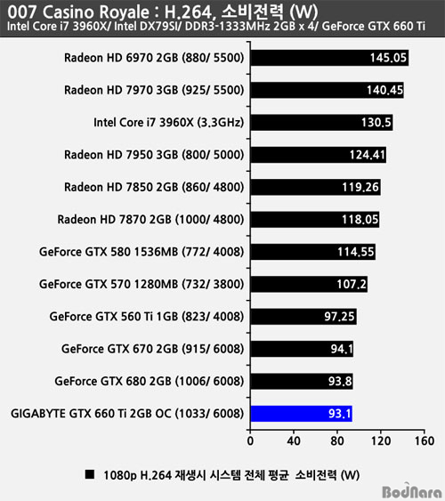 ±â°¡¹ÙÀÌÆ® ÁöÆ÷½º GTX 660 Ti OC¸¦ Æ÷ÇÔÇÏ¿© Å×½ºÆ®¿¡ »ç¿ëµÈ ±×·¡ÇÈÄ«µåµéÀÇ º¥Ä¡¸¶Å© ¹× °ÔÀÓÀ» µ¿ÀÛÇÏ´Â µ¿¾ÈÀÇ ¿Âµµ¿Í ½Ã½ºÅÛÀÇ Àüü ¼ÒºñÀü·Â, H264 Àç»ý½ÃÀÇ CPU ¹× ¼ÒºñÀü·ÂÀ» ºñ±³Çß´Ù.