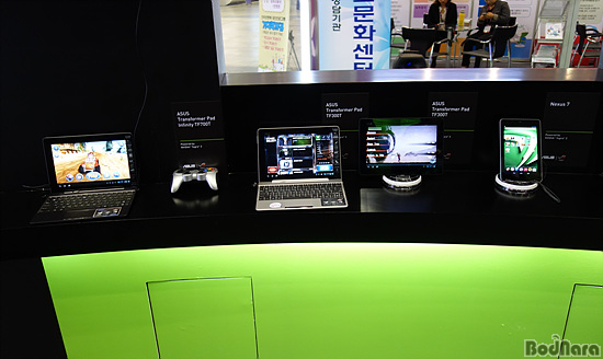 ¶ÇÇÑ ±¸±Û ³Ø¼½º(Google Nexus) 7, ASUS Æ®·£½ºÆ÷¸Ó ÇÁ¶óÀÓ(ASUS Transformer Prime), LG ¿ÉƼ¸Ó½º ºä(Optimus Vu) µî ¿£ºñµð¾Æ Å×±×¶ó ¸ð¹ÙÀÏ AP°¡ žÀçµÈ µð¹ÙÀ̽ºµµ ´ë°Å Àü½ÃµÅ, Âü°ü°´µéÀÌ ¸£³×»ó½º ºí·¯µå(Renaissance Blood) THD µî Å×±×¶ó ÃÖÀûÈ °ÔÀÓÀÇ ¶Ù¾î³ ¼º´ÉÀ» Á÷Á¢ üÇèÇÒ ¼ö ÀÖµµ·Ï ÇØÁÖ°í ÀÖ´Ù.