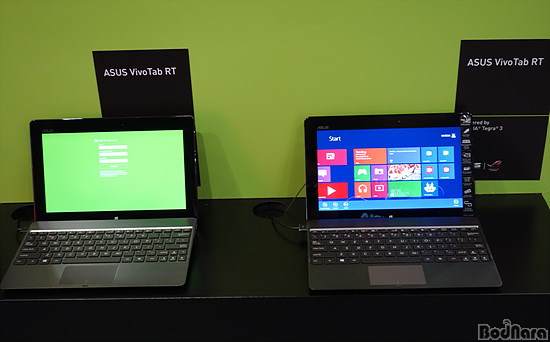 Àü½ÃµÈ ASUSÀÇ ºñº¸ÅÇ(VivoTab TF600T)Àº 11.6ÀÎÄ¡ ¸ÖƼÅÍÄ¡ HD µð½ºÇ÷¹ÀÌ, ¿ÍÄÞÀÇ µðÁöŸÀÌÀú ½ºÅ¸ÀÏ·¯½º, ÀÎÅÚ ¾ÆÅè µà¾óÄÚ¾î ÇÁ·Î¼¼¼¸¦ žÀçÇß´Ù. ¿É¼ÇÀ¸·Î Á¦°øµÇ´Â ¸ð¹ÙÀÏ µ¶¸¦ ÀåÂøÇϸé Ç® Űº¸µå¸¦ ÀÌ¿ëÇÒ ¼ö ÀÖ°í ÃÖ´ë 19½Ã°£ »ç¿ë °¡´ÉÇÏ´Ù.