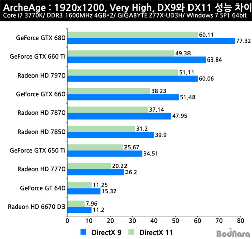 ¹Ý¸é, ¸ÞÀνºÆ®¸²±ÞÀÎ ÁöÆ÷½º GTX 650 Ti´Â ¾à 9ÇÁ·¹ÀÓ °¡·® ¼º´ÉÀÌ Çâ»óµÈ Æò±Õ 34.51 ÇÁ·¹ÀÓÀÇ ¼º´ÉÀ¸·Î Å×½ºÆ® ±¸°£¿¡¼´Â Å« ¹«¸®¾ø´Â °ÔÀÓ Ç÷¹À̰¡ °¡´ÉÇØÁ³°í, DX 11¿¡¼´Â Æò±Õ 50ÇÁ·¹ÀÓ °¡·®À» ±â·ÏÇß´ø ÁöÆ÷½º GTX 660 Ti¿Í ¶óµ¥¿Â HD 7970Àº 10ÇÁ·¹ÀÓ ÀÌ»ó ¼º´ÉÀÌ Çâ»óµÇ¾î Æò±Õ 60 ÇÁ·¹ÀÓ ÀÌ»óÀ» ±â·Ï, ÁöÆ÷½º GTX 680Àº 17ÇÁ·¹ÀÓ ÀÌ»ó ¼º´ÉÀÌ Çâ»óµÈ Æò±Õ 77.32 ÇÁ·¹ÀÓÀ» ±â·ÏÇÏ´Â µî, DX 9 ¸ðµå »ç¿ë ½Ã Àü¹ÝÀûÀÎ ±×·¡ÇÈ ºÎÇϰ¡ ³·¾ÆÁüÀ» ¾Ë ¼ö ÀÖ´Ù.