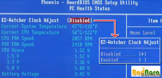 ´ÙÀ̾ó ±â´ÉÀ» Ȱ¼ºÈ½ÃŰ´Â EZ-Watcher Clock Adjust Ç׸ñÀÌ ÀÖÀ¸¸ç ³ª¸ÓÁö´Â ½Ã½ºÅÛÀÇ ¿Âµµ, ÆÒ¼Óµµ, Àü¾Ð µîÀ»