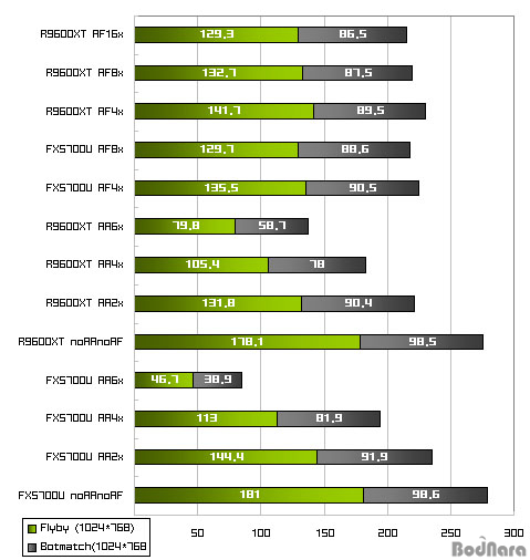 AA Àû¿ë¿¡ µû¸¥ ¼º´É Ç϶ôÀº AquaMark3¸¦ ÀÌ¿ëÇß´Ù. AquaMark3¿¡¼­´Â ±âº»°ªºÎÅÍ Radeon 9600 XT°¡ ¾Õ¼­´Âµ¥, º¥Ä¡¸¶Å©ÀÇ ±âº» ¼³Á¤°ªÀÌ AF 4XÀ̱⠶§¹®¿¡ AF Àû¿ë¿¡ µû¸¥ Á¡¼ö Ç϶ôÆøµµ °í·Á¸¦ ÇØ¾ß ÇÑ´Ù. ¹°·Ð AF¿¡ µû¸¥ ³«ÆøÀ» °¨¾ÈÇÏ´õ¶óµµ ¾î´À Á¤µµ Radeon¿¡ À¯¸®ÇÑ ½ºÄھ º¸¿©ÁØ º¥Ä¡¸¶Å© ÇÁ·Î±×·¥À̱⵵ ÇÏ´Ù. nVIDIAÀÇ AA6X¿Í AA8XÀÇ È­Áú Â÷À̰¡ °ÅÀÇ ¾ø±â ¶§¹®¿¡ AA6X°¡ ÇѰèÀÎ ATI¿ÍÀÇ ÇüÆò¼ºÀ» ¸ÂÃß±â À§ÇØ AA8XÀÇ ½ºÄÚ¾î´Â ÃøÁ¤ÇÏÁö ¾Ê¾Ò´Ù.