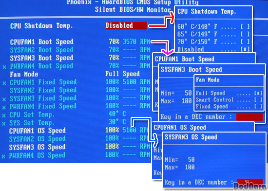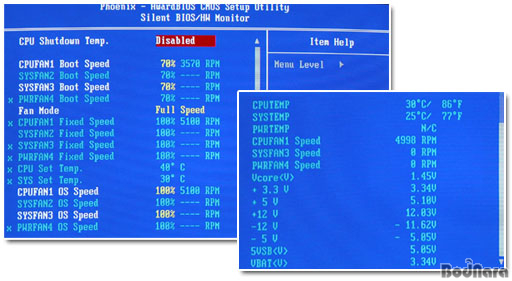 Monitor ¿¡¼´Â CPU ¼Ë´Ù¿î ¿Âµµ¿Í ÆÒ¼Óµµ Á¶Àý Ç׸ñÀÌ ÀÖÀ¸¸ç ±× ¾Æ·¡·Î ¸ÞÀκ¸µåÀÇ »óȲÀ» ¾Ë ¼ö ÀÖ´Â ¸ð´ÏÅ͸µ Ç׸ñµéÀÌ ³ª¿µÇ¾î