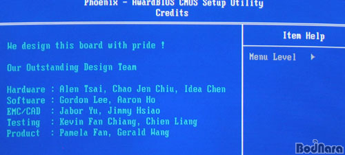 Credits¸¦ ÅëÇØ ¸ÞÀκ¸µå¸¦ ¸¸µç AOpenÀÇ ±â¼úÁø À̸§µéÀ» ¾Ë ¼ö ÀÖ´Ù.