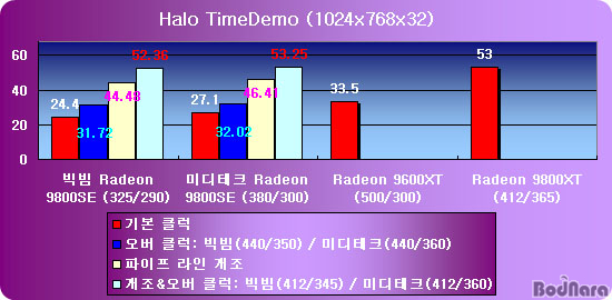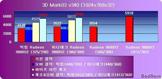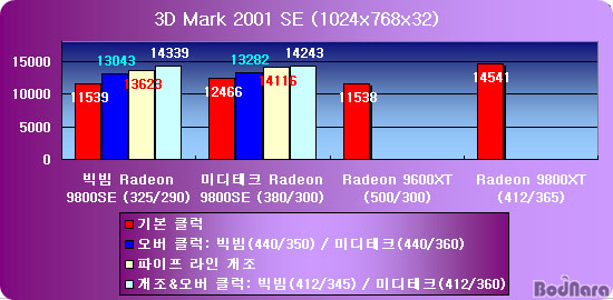7. ºÎ·Ï: Radeon 9800SE °³Á¶/¿À¹ö¿¡ µû¸¥ ¼º´Éº¯È­ ºñ±³