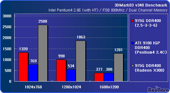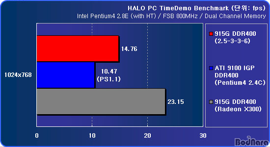 2.0À» Áö¿øÇÏ´Â HALO PCÆÇ ŸÀÓµ¥¸ð º¥Ä¡¸¶Å© °á°úµµ 915G°¡ 9100 IGP¸¦ Å©°Ô À̱â°í ÀÖ´Ù. Radeon
