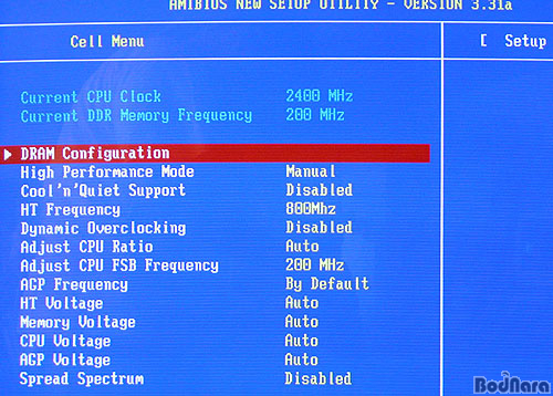 Cell Menuµµ K8N Neo2¿Í Å©°Ô ´Ù¸£Áö ¾ÊÀº ±¸¼ºÀ» Çϰí ÀÖ´Ù. ¸Þ¸ð¸® Á¶Àý ¼¼ºÎ ¸Þ´º ¾Æ·¡·Î High Performance