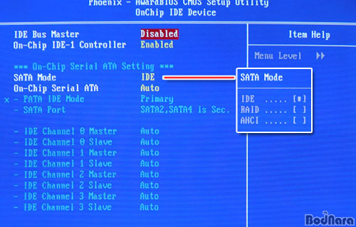 IDE ¼³Á¤Àº SATA ¿É¼ÇÀÇ Á¶ÀýÀ» ÅëÇØ »ç¿ëÇÑ´Ù. ÀÌ ¿É¼ÇÀ» º¯°æÇϸé SATA ä³ÎÀ» RAID·Î »ç¿ëÇÒ ¼ö ÀÖ´Ù.