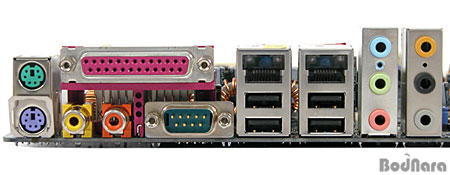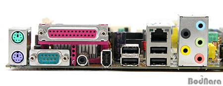 IEEE 1394 Æ÷Æ®, ÄÚ¿¢½Ã¾ó Ãâ·Â, ³×Æ®¿÷ ¹× USB 2.0 Áö¿ø 2Æ÷Æ®, USB 2.0 Áö¿ø 2Æ÷Æ®, 5°³ÀÇ »ç¿îµå Æ÷Æ® ¹× S/PDIF Ãâ·Â Æ÷Æ®¸¦ Á¦°øÇÑ´Ù.