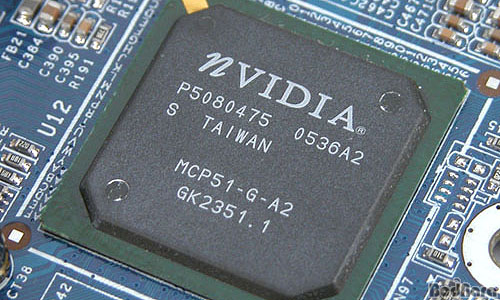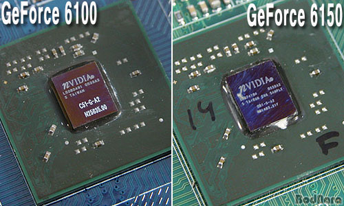 GeForce 6100 Ĩ¼ÂÀº ÄÚ¾î Å©±â³ª ÀúÇ×ÀÇ ÇüÅ ¹× À§Ä¡°¡ ·¹ÆÛ·±½º ¸ÞÀκ¸µå¿¡ ´Þ·ÁÀÖ´ø GeForce 6150°ú µ¿ÀÏÇÏ´Ù. µû¶ó¼­ °ÑÀ¸·Î º¸±â¿¡´Â µÎ Ĩ¼Â°£ÀÇ Â÷ÀÌ´Â ¾ø´Ù. ÇÏÁö¸¸ ½ÇÁ¦·Î´Â ÄÚ¾î Ŭ·°À̶ó´øÁö TV-Out Áö¿ø, HD±Þ ¿µ»óÀÇ PureVideo Áö¿ø µî ¼¼¼¼ÇÑ ºÎºÐ¿¡¼­ Â÷À̰¡ ³ª±â ¶§¹®¿¡ Ĩ¼Â °³Á¶°¡ °¡´ÉÇÒÁö°¡ ±Ã±ÝÇØÁø´Ù.