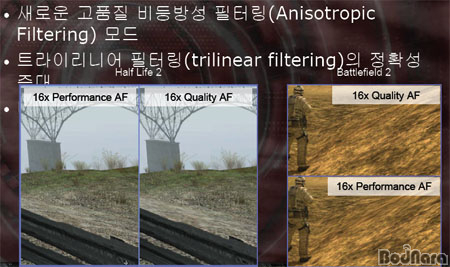 ATI°¡ À̹ø¿¡ Àû¿ëÇÑ  High Quality Anisotropic±â´ÉÀº °æÀï»çÀÎ nVIDIA°¡ NV3x GPU ½ÃÀý¿¡ Àû¿ëÇÏ´ø ¹æ½Ä°ú ºñ½ÁÇÑ ¹æ½ÄÀÌÁö¸¸ nVIDIAÀÇ °æ¿ì NV3x¿¡ ÀÌ·¯ÇÑ ¹æ½ÄÀ» Àû¿ëÇÑ °á°ú ¼º´É ÀúÇÏ ¹®Á¦°¡ ½É°¢ÇÏ¿´Áö¸¸ ATIÀÇ  High Quality Anisotropic ±â´ÉÀº ºñ±³Àû ÀûÀº ¼º´ÉÀúÇϸ¦ ³ªÅ¸³¾ »ÓÀ̶ó°í ÇÑ´Ù.