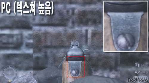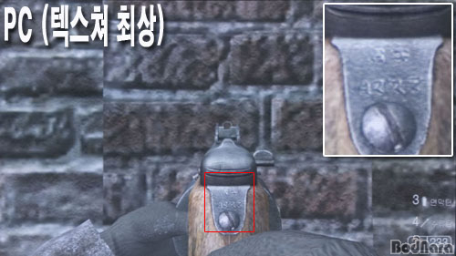 PCÆÇÀÇ °æ¿ì ÅØ½ºÃÄ ¼ÂÆÃÀ» ³ôÀ½(High)À¸·Î Çϸé ÃÑÀÇ µðÅ×ÀÏÀÌ ¹¶°ÔÁ®¼­ ±ÛÀÚ¸¦ ¾Ë¾Æº¸±â Èûµç ¹Ý¸é, º®ÀÇ µðÅ×ÀÏÀº XBOX 360°ú °°¾ÆÁø´Ù. ±×·¯³ª ÃÑÀÇ µðÅ×ÀÏÀ» »ì¸®±â À§ÇØ ÅØ½ºÃÄ ¼±¸íµµ¸¦ ÃÖ»óÀ¸·Î ÇÏ¸é º®ÀÇ µðÅ×ÀÏÀÌ XBOX 360º¸´Ù ´õ ³ô¾ÆÁø´Ù. ÃѰú ÇÔ²² ´Ù¸¥ ºÎºÐÀÇ µðÅ×Àϵµ XBOX 360º¸´Ù ³ô¾ÆÁö´Â °ÍÀÌ´Ù.