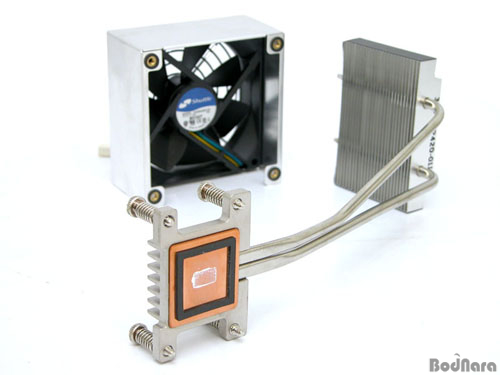 Shuttle XPC SD11G5´Â º£¾îº»À̱⠶§¹®¿¡ ¸ð¹ÙÀÏ ÇÁ·Î¼¼¼­ÀÇ ÆÐŰÁö ±¸¼ºÀ» µû·Î °¨¾ÈÇÏÁö ¾Ê´õ¶óµµ ÀÚüÀûÀ¸·Î º£¾îº»¿¡ ÃÖÀûÈ­µÈ CPU Ä𷯸¦ ±âº»À¸·Î °¡Áö°í ÀÖ´Ù. 2°³ÀÇ È÷Æ®ÆÄÀÌÇÁ¸¦ »ç¿ëÇÏ´Â SD11G5ÀÇ Äð·¯´Â CPU¿Í ´ê´Â º£À̽º ºÎºÐÀ» ±¸¸® ÀçÁú·Î ¸¸µé°í ÄÚ¾î ±úÁüÀ» ¸·±â À§ÇØ ÆÐµå¸¦ ºÙ¿©³õ¾Ò´Ù.