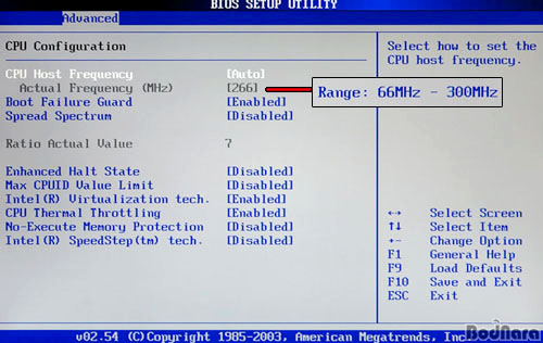 ConRoe945G-DVI º¸µåó·³ ¿À¹öŬ·°¿¡ °ü·ÃµÈ ƯÁ¤ ¸Þ´º°¡ ÀÖ´Â°Ô ¾Æ´Ï¶ó CPU³ª Ĩ¼Â µîÀÇ ±âº» ¸Þ´º¿¡¼­ ÇØ´ç ±â´ÉÀÌ Æ÷ÇÔµÈ ¸ð½ÀÀÌ´Ù. FSB Ŭ·° Á¶Àý ¿É¼ÇÀº CPU Configuration ¾È¿¡ µé¾îÀִµ¥, 66MHz ~ 300MHz±îÁö ¼³Á¤ÇÒ ¼ö ÀÖ´Ù. ConRoe865PE º¸µå´Â FSB 1066MHz CPU¸¦ »ç¿ëÇÒ ¶§´Â ¸ÞÀκ¸µåÀÇ Á¡ÆÛ ¼³Á¤À» ¹Ù²ãÁà¾ß ÇÑ´Ù.