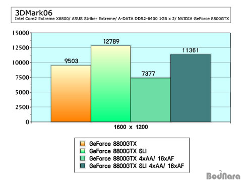 Å×½ºÆ®¿¡´Â ASUSÀÇ DirectX 10À» Áö¿øÇϰí ÀÖ´Â GeForce 8800GTX 2°³¸¦ SLI ±¸¼ºÇÏ¿© Å×½ºÆ®¸¦ ÁøÇàÇÏ¿´´Ù. GeForce 8800GTXÀÇ °æ¿ì SLI¸¦ Áö¿øÇÏ´Â ÃÖ»óÀ§ Ĩ¼ÂÀ̰í nForce 680i SLI Ĩ¼Â°ú °°Àº NVIDIAÀÇ Á¦Ç°À̱⠶§¹®¿¡ SLI ±¸¼º¿¡µµ ¹®Á¦°¡ ¾ø´Ù. ¼º´ÉÀº 1600 x 1200 ÇØ»óµµ¿¡¼­ Å×½ºÆ®¸¦ ÁøÇàÇÏ¿´´Âµ¥ AA/ AF¸¦ Àû¿ëÇÏÁö ¾Ê¾ÒÀ» ¶§ SLI¸¦ ±¸¼ºÇÏ¸é ½Ì±ÛÀ϶§º¸´Ù ¾à 25.69%, AA/ AF¸¦ Àû¿ëÇÏ¿´À» ¶§´Â ¾à 35%ÀÇ ¼º´É Çâ»óÀ» º¸¿´´Ù. À̷лóÀÇ µÎ ¹è¿¡ À̸£´Â ¼º´ÉÀº ¾Æ´Ï¾úÁö¸¸, ÃæºÐÈ÷ ³ôÀº ¼º´ÉÀ» ¾òÀ» ¼ö ÀÖ´Ù.