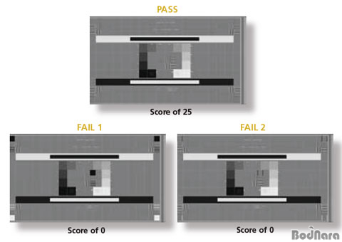 À̹ø Å×½ºÆ®´Â Àιö½º ÅÚ·¹½Ã³×°¡ Á¤»óÀûÀ¸·Î Àû¿ëµÇÁö È®ÀÎÇÏ´Â °ÍÀ¸·Î 1920 x 1080i È­¸éÀÇ Ä÷¯ ¹Ù¿Í ´Ü¼øÇÑ ÆÐÅÏÀ¸·Î ±¸¼ºµÈ ¶óÀÎÀ» Á¦´ë·Î Ç¥ÇöÇØÁÖ´ÂÁö¸¦ È®ÀÎÇÑ´Ù. Á¡¼ö´Â 0/25ÀÇ µÎ °¡Áö·Î ¾Õ¼­ µðÀÎÅÍ·¹ÀÌ½Ì ºÎºÐ¿¡¼­ üũÇÑ °Í°ú ¸¶Âù°¡Áö·Î ´Ù¼¸ ºÎºÐ¿¡ ÇϾá»ö°ú °ËÁ¤»öÀÇ Á¤»ç°¢Çü ¹Ú½º°¡ ÀÖÀ¸¸é Á¡¼ö´Â 0, ¸¶Âù°¡Áö·Î ´Ù¼¸ ºÎºÐ¿¡ ÇϾá»öÀ̳ª °ËÁ¤»ö ¸ð¾Æ·¹°¡ ³²¾ÆÀÖÀ¸¸é 0Á¡, ´Ù¼¸ ºÎºÐ¿¡ ¾Æ¹«·± ¹Ú½º³ª ¼öÁ÷ ¹êµå ¸ð¾ç µîÀÌ Æ÷ÇÔµÇÁö ¾ÊÀ¸¸é 25Á¡ÀÌ´Ù.