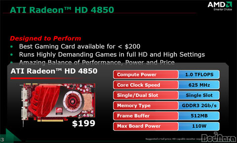 $250-$500 »çÀÌÀÇ ÇÏÀÌ¿£µå¿¡ À§Ä¡Çϸç, HD 4850Àº $100-$250 »çÀÌÀÇ ÆÛÆ÷¸Õ½º ½ÃÀå¿¡ ÀÚ¸®Àâ°í HD