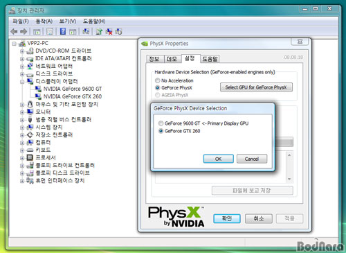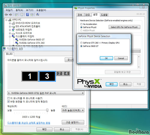 [GTX 260À» 2¹ø, 9600GT¸¦ 1¹ø ½½·Ô ¼³Ä¡, GTX 260À» PhysX ¿¬»êÀ¸·Î ¼±ÅÃ]