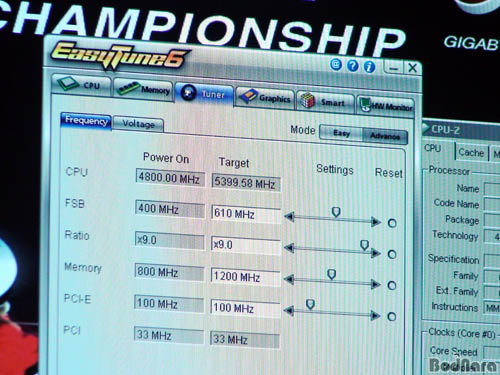 E8400 ¿À¹ö¼öÄ¡ E8400À» 5399.58Mhz±îÁö ²ø¾î¿Ã·È´Ù. FSB 610Mhz¿¡ 9¹è¼ö.