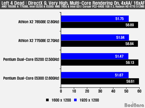 Left 4 Dead Å×½ºÆ®µµ COH : TOV¿Í ¸¶Âù°¡Áö·Î DirectX 9 ȯ°æ°ú 1600 x 1200, 1920 x 1200, ±×¸®°í À̵é ÇØ»óµµ¿¡ 4xAA¸¦ Àû¿ëÇÏ¿´À» ¶§ÀÇ °á°ú¸¦ ºñ±³Çß´Ù.