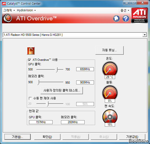 [¶óµ¥¿Â HD 5570, 2D ¸ðµå ÄÚ¾î 157/ ¸Þ¸ð¸® 400 (200)MHz] HIS ¶óµ¥¿Â HD 5570 1GB ¹öÀüÀº HD 5670°ú ´Þ¸® DDR3 ¸Þ¸ð¸®¸¦ »ç¿ëÇÏ¿© Ŭ·°ÀÌ ´õ ³·À¸³ª ºÎÇÏ¿¡ µû¸¥ ½ºÀ§ÄªÀÌ Àû¿ëµÇ¾î 2D ¸ðµå¿¡¼´Â Äھ 157MHz, ¸Þ¸ð¸®´Â 400 (200)MHz·Î Å©°Ô ³·¾ÆÁø´Ù.  ¶óµ¥¿Â HD 5670Àº 3D Áï, °ÔÀÓ µîÀ» µ¿ÀÛÇÏ´Â Ç®·Îµå »óŰ¡ µÇ¸é ÄÚ¾î 775/ ¸Þ¸ð¸® 4000 (1000)MHz·Î µ¿À۵Ǹç, 2D ¸ðµå Áï, ¾ÆÀÌµé »óÅ¿¡¼´Â ÄÚ¾î 157/ 1200 (300)MHz·Î Ŭ·°ÀÌ ³·¾ÆÁø´Ù. ÀÌ´Â »óÀ§ ¶óµ¥¿Â HD 5800/ HD 5700 ½Ã¸®Áî¿Í °°ÀÌ 40nm °øÁ¤ Àû¿ë°ú ATI PowerPlay Çâ»ó°ú ºÎÇÏ¿¡ µû¸¥ ½ºÀ§Äª ±â´ÉÀ¸·Î ¸Þ¸ð¸®ÀÇ Å¬·°µµ º¯°æµÇ¾î Àü·ÂÈ¿À²ÀÌ ´õ ³ô¾ÆÁ³´Ù. HIS ¶óµ¥¿Â HD 5570 1GB ¹öÀüÀº ¸Þ¸ð¸® Ŭ·°µµ ´õ ³·¾ÆÁö°í 50W ÀÌÇÏÀÇ TDP¸¦ Á¦°øÇÏ´Â ¸¸Å ¶óµ¥¿Â HD 5670º¸´Ù ³·Àº ¼ÒºñÀü·ÂÀ» Á¦°øÇÒ °ÍÀ¸·Î ¿¹»óµÈ´Ù.     ¶óµ¥¿Â HD 5570 Å×½ºÆ® ½Ã½ºÅÛ