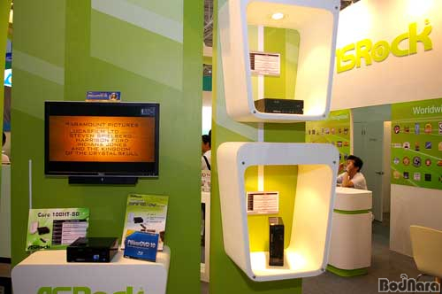 7. ¹Ì´Ï PC À§ÁÖÀÇ ASRock  ASRockÀº ºÎ½º ¿Ü°û¿¡ ¸ÞÀκ¸µå¸¦ Àü½ÃÇϰí, ºÎ½º ³»ºÎ¿¡´Â ¹Ì´Ï PC¿Í HTPC ½Ã½ºÅÛ, Eyefinity ½Ã½ºÅÛÀ» Àü½ÃÇß´Ù.