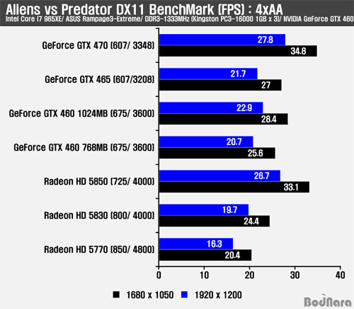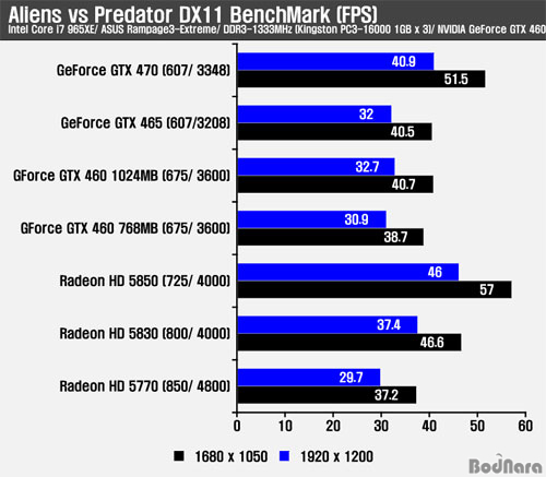 DirectX 11 Áö¿ø Aliens vs Predator´Â ÃÖ±Ù DirectX 11°ú Å×¼¿·¹À̼ÇÀ» Àû¿ëÇÑ º¥Ä¡¸¶Å© ÇÁ·Î±×·¥ÀÌ µîÀåÇÏ¿´°í À̸¦ ÅëÇØ ¼º´ÉÀ» ºñ±³Çغ¸¾Ò´Ù. Äݸ°¸Æ·¹ÀÌ ´õÆ®2 (Colin McRae : DiRT2)¿Í ´Þ¸® À̹ø °ÔÀÓÀº AA ¹ÌÀû¿ë½Ã¿¡´Â ¶óµ¥¿Â HD 5800 ½Ã¸®Áî°¡, AA Àû¿ë½Ã ÁöÆ÷½º GTX 400 ½Ã¸®Áî°¡ Àü¹ÝÀûÀ¸·Î ³ôÀº ÇÁ·¹ÀÓÀ» Á¦°øÇß´Ù.