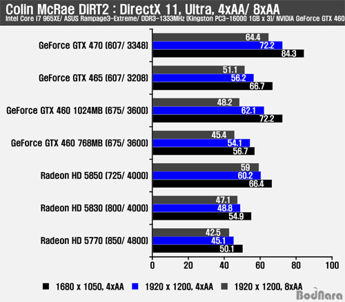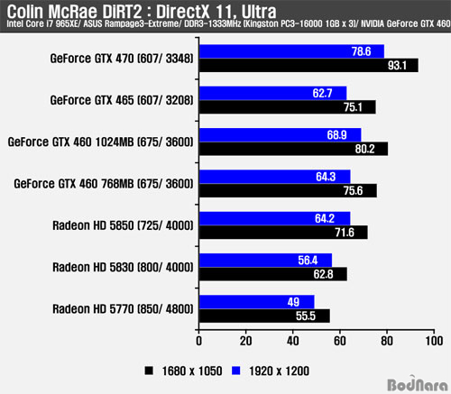 Äݸ° ¸Æ·¹ÀÌ ´õÆ®2 (Colin McRae DiRT2)´Â DirectX 11À» Áö¿øÇϰí ÀÖ´Â °ÔÀÓÀ¸·Î DirectX 9¿¡¼µµ ¾Õ¼ »ìÆìº» °Íó·³ ÁöÆ÷½º GTX 400 ½Ã¸®Áî´Â ³ôÀº ÇÁ·¹ÀÓÀ» Á¦°øÇߴµ¥ DirectX 11 ȯ°æ°ú Å×¼¿·¹À̼ÇÀÌ Àû¿ëµÈ »óȲ¿¡¼µµ Àü¹ÝÀûÀ¸·Î ³ôÀº ÇÁ·¹ÀÓÀ» Á¦°øÇß´Ù.