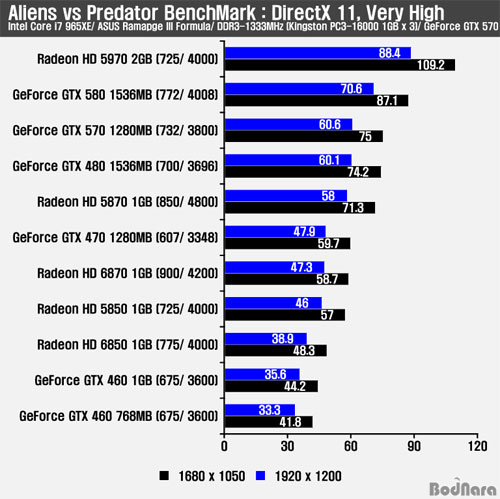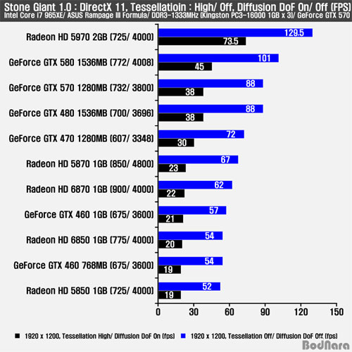 Å×¼¿·¹À̼ǰú DirectX 11À» Áö¿øÇÏ´Â ½ºÅæ ÀÚÀÌ¾ðÆ® º¥Ä¡¸¶Æ® ¿ª½Ã Alines vs Predator DX11 º¥Ä¡¸¶Å©¿Í ¸¶Âù°¡Áö·Î µà¾ó GPU ±â¹ÝÀÇ ¶óµ¥¿Â HD 5970ÀÌ Å×¼¿·¹À̼ÇÀ» ÄÑ°í ²û°ú °ü°è¾øÀÌ °¡Àå ³ôÀº ÇÁ·¹ÀÓÀ» Á¦°øÇÏ´Â °ÍÀÌ È®ÀεȴÙ. ÀÌÇÏÀÇ ½Ì±Û GPU Á¦Ç°±º¿¡¼´Â ÁöÆ÷½º GTX 580À» À̾î ÁöÆ÷½º GTX 570°ú GTX 480Àº Â÷À̾ø´Â ÇÁ·¹ÀÓÀ» Á¦°øÇÑ´Ù.