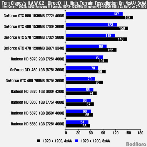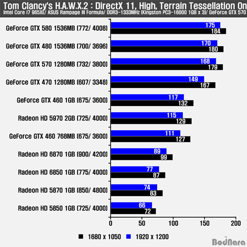 HAWX2 µ¥¸ð´Â DirectX 11À» Áö¿øÇϰí Àִµ¥ ¾Õ¼ÀÇ °ÔÀÓ°ú ´Þ¸® ÁöÆ÷½º GTX 480ÀÌ ±Ù¼ÒÇÏ°Ô ´õ ³ôÀº ÇÁ·¹ÀÓÀ» Á¦°øÇϰí ÀÖ¾î, ROP ¼ö¿Í ¸Þ¸ð¸® ÀÎÅÍÆäÀ̽º, ¸Þ¸ð¸® ´ë¿ªÆøÀÇ ¿µÇâÀÌ ´õ Å©°Ô ³ªÅ¸³ª´Â °ÔÀÓÀ¸·Î º¼ ¼ö ÀÖ´Ù. HAWX2µµ ÁöÆ÷½º 400 ½Ã¸®Áî¿Í ÁöÆ÷½º 500 ½Ã¸®ÁîÀÇ ¼º´ÉÀÌ Àü¹ÝÀûÀ¸·Î ³ôÀº ÆíÀÌ´Ù.