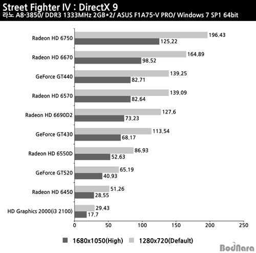 ½ºÆ®¸®Æ® ÆÄÀÌÅÍ 4¿¡¼ HD 6550D´Â 1680x1050 ÇØ»óµµ¿Í 1280x720 ÇØ»óµµ ¸ðµÎ ¿øÇÒÇÑ Ç÷¹À̰¡ °¡´ÉÇÑ ¼öÁØÀÇ ¼º´ÉÀ» ³»ÁÖÁö¸¸, HD 6670°ú µà¾ó ±×·¡ÇÈ ±¸¼º ½Ã¿¡´Â HD 6550D¸¸À¸·Î Ç÷¹ÀÌÇÒ ¶§ º¸´Ù´Â ¼º´ÉÀÌ Çâ»óµÆÁö¸¸ HD 6670¸¸À¸·Î Ç÷¹ÀÌÇßÀ» ¶§ÀÇ 75% ¼öÁØÀ¸·Î ¼º´ÉÀÌ Ç϶ôÇÏ´Â ¸ð½ÀÀ» º¸ÀδÙ.