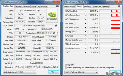[ÁöÆ÷½º GTX 690, ¾ÆÀ̵é½Ã ÄÚ¾î 324/ ¸Þ¸ð¸® 648 (162)MHz]