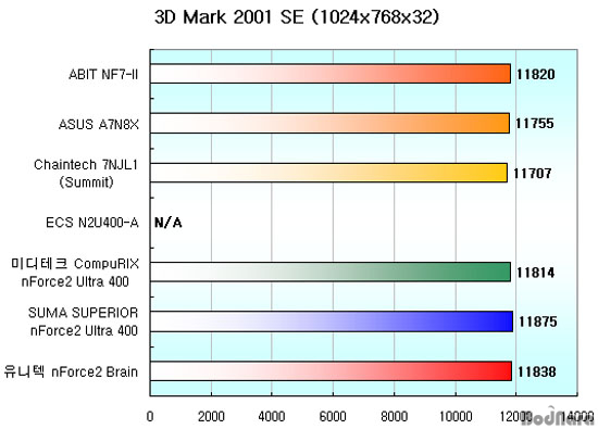 ¡¡ 3D Mark 2001 SE¿¡¼ÀÇ °á°úµµ ¸¶Âù°¡Áö¿©¼ °¢°¢ÀÇ º¸µåÀÇ ±¸¼ºÀ̳ª