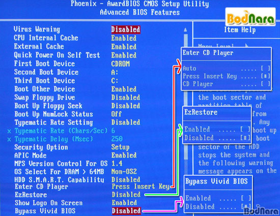 ¿Ü¿¡ AOpen¿¡¼¸¸ Áö¿øÇÏ´Â ±â´ÉÀÎ CD Player¿Í EzRestore, Vivid BIOS ±â´ÉÀ» Ȱ¼ºÈ ½Ãų ¼ö ÀÖ´Â ¿É¼ÇÀÌ