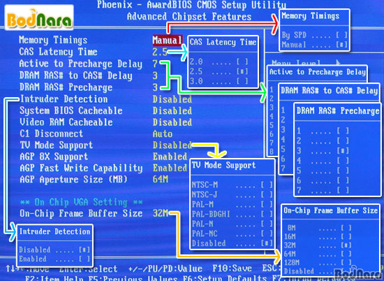 ±×·¡ÇÈ ¸Þ¸ð¸®, TV-Out¿¡ °ü·ÃµÈ ¼³Á¤À» Á¶ÀýÇÒ ¼ö ÀÖ´Ù. ¸Þ¸ð¸® ŸÀ̹ÖÀº ÀϹÝÀûÀÎ ¸ÞÀκ¸µå¿¡¼ Áö¿øÇÏ´Â °Í°ú µ¿ÀÏÇÏ¸ç ³»Àå