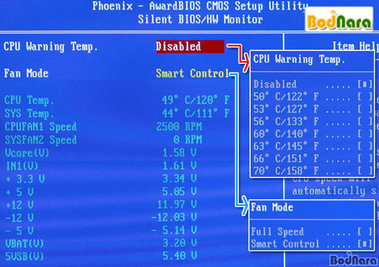 Silent BIOS/HW Monitor¿¡¼´Â ½Ã½ºÅÛÀÇ ¿Âµµ, ÆÒ¼Óµµ,