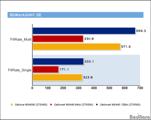 ¼º´ÉÀÇ ±âº»À̶ó°í ÇÒ ¼ö ÀÖ´Â FillRate¸¦ Ã¼Å©ÇØ º¸¾Ò´Âµ¥, MX440°ú µ¿ÀÏÇÑ NV18À̾ú´Ù¸é, °°Àº 64ºñÆ® ¹ö½ºÀ϶§ ºñ½ÁÇÑ FillRate¸¦ º¸¿©¾ß ÇÒ °ÍÀÌ´Ù. ±×·¯³ª MX4000Àº ÀÌ¹Ì MX440°ú ºñ±³´ë»óÀÌ ¾Æ´Ï´Ù. ¸Þ¸ð¸® Ŭ·°ÀÌ 100MHz³ª ³ôÀº 128bit MX440°ú µ¿µîÇÑ ¼öÁØÀÇ FillRate¸¦ º¸À̰í ÀÖ´Ù. ¾î¶»°Ô ¹Þ¾Æµé¿©¾ß ÇÏ´Â °ÍÀϱî?
