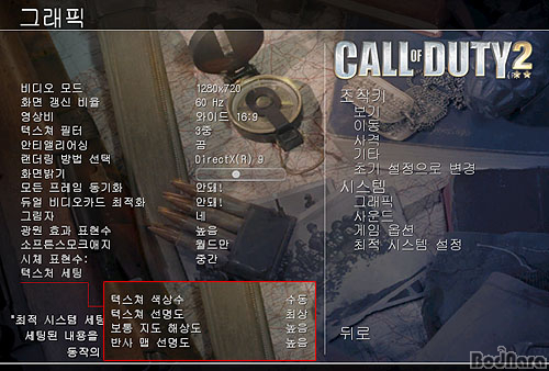 ¾ÕÀå¿¡¼­ »ìÆìº» XBOX 360°ú PC¿ë Call of Duty2ÀÇ ±×·¡ÇÈ Â÷À̸¦ ÅëÇØ PC¿¡¼­ XBOX 360°ú ºñ½ÁÇÑ ±×·¡ÇÈ ¼³Á¤À» ³õ´Â´Ù¸é À§ÀÇ ¿É¼Ç°ú °°´Ù.