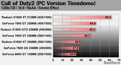 ÇÊÀÚ°¡ È­¸é ºñ±³¸¦ ÅëÇØ XBOX 360°ú ºñ½ÁÇÏ´Ù°í »ý°¢ÇÑ ¿É¼ÇÀ¸·Î ¼³Á¤ÇÑ PCÆÇÀÇ Å¸ÀÓµ¥¸ð Æò±Õ ÇÁ·¹ÀÓÀ» ÃøÁ¤ÇÑ °á°ú, ¿ÀÁ÷ Radeon X1800 XT 512MB¸¸ÀÌ Æò±Õ 60ÇÁ·¹ÀÓÀ» ³Ñ¾úÀ¸¸ç GeForce 7600 GT ¹ØÀ¸·Î´Â Æò±Õ 30ÇÁ·¹ÀÓ¿¡µµ À̸£Áö ¸øÇß´Ù.